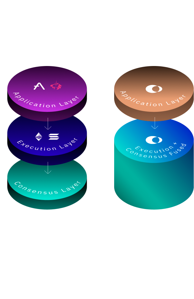 Separate execution model depends on L2s to scale, adding complexity, rollup costs, and liquidity fragmentation